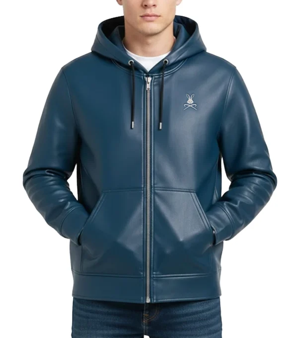 Axton Blue Leather Zipper Hoodie Jacket for Men and Women
