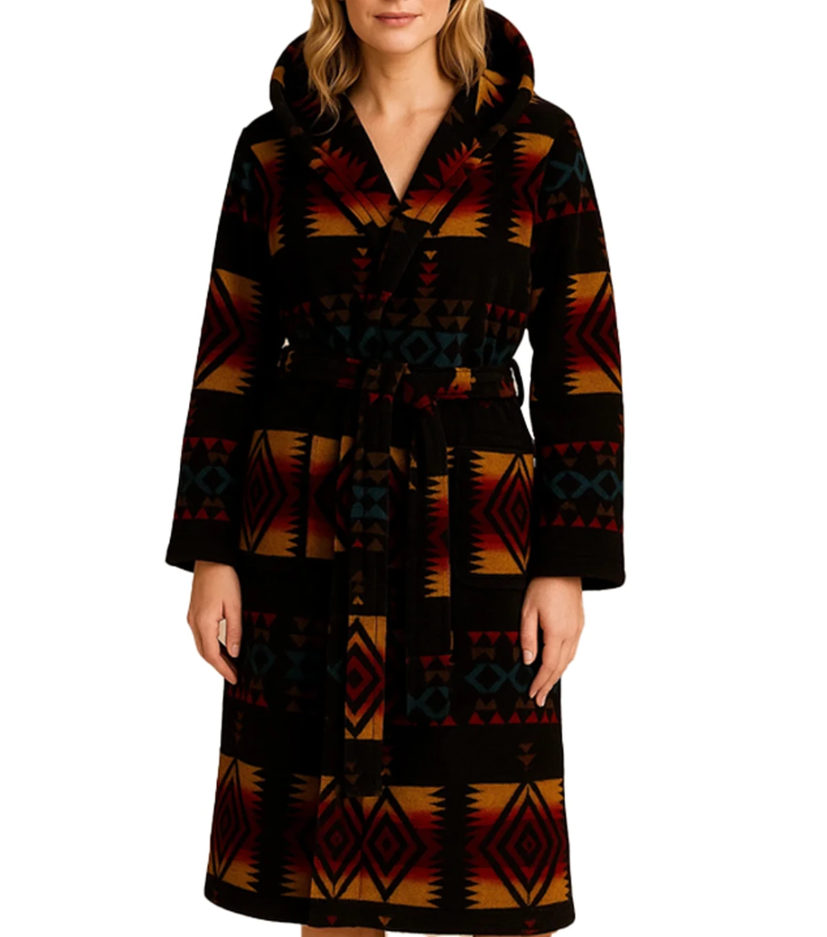 Be the first to review “Aztec Print Hooded Bathrobe”