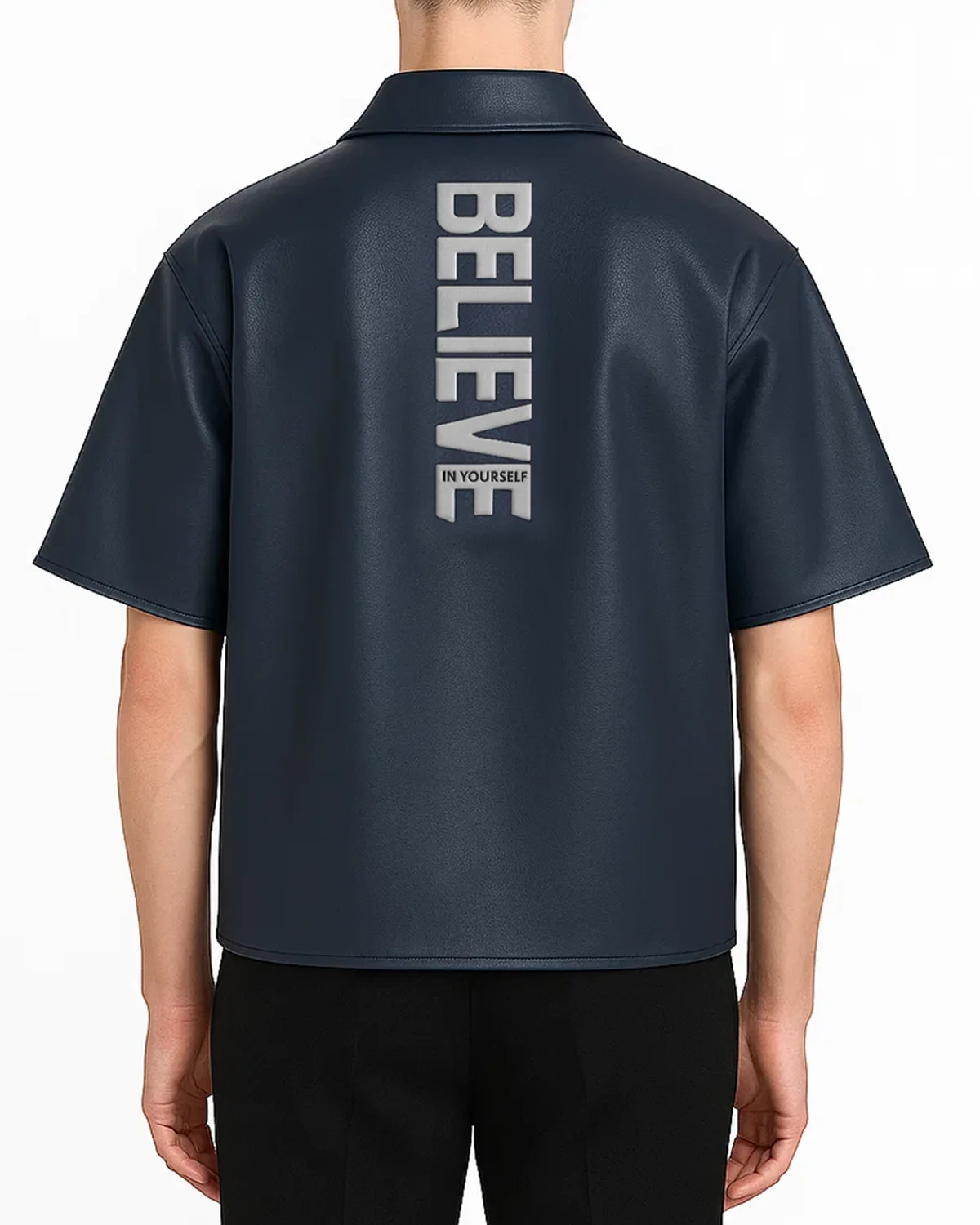 It is crafted from real leather, plus the Believer Oversized Snap Shirt offers a smooth plus premium feel. The leather gives it a strong structure while still feeling comfortable to wear. The black color adds a powerful plus timeless touch. Black always looks sharp, stylish, plus easy to match with different outfits.