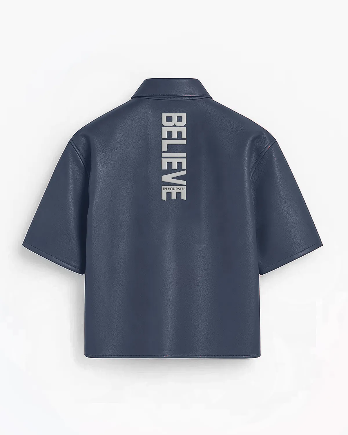 Apart from that, it has half sleeves, which make this piece unique. They give a fresh plus modern look while keeping the design simple. The classic style collar adds a clean plus structured finish. It balances the bold leather material with a touch of traditional shirt style.