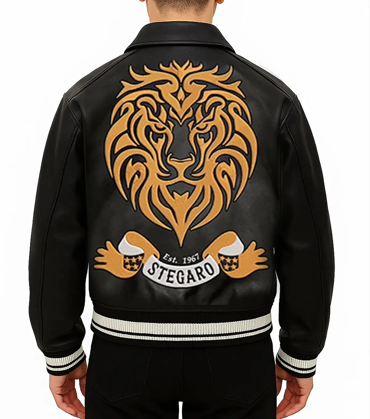 Embrace your bravery and courage with a perfect fashion statement! With every new challenge, life opens the doors to fresh opportunities that lead us toward success. Your style is not just a reflection of who you are but also a testimony of your determination and power. With this belief, Stegaro helps its wearer to wear their confidence like an accessory, letting them succeed through every challenge. For this, we brought a new addition to our Chic BOMBER JACKET COLLECTION that allows your spirit to fly higher than others expected. So let us announce the launch of our Gold Lion Leather Jacket, which symbolizes bravery and courage in every wear!