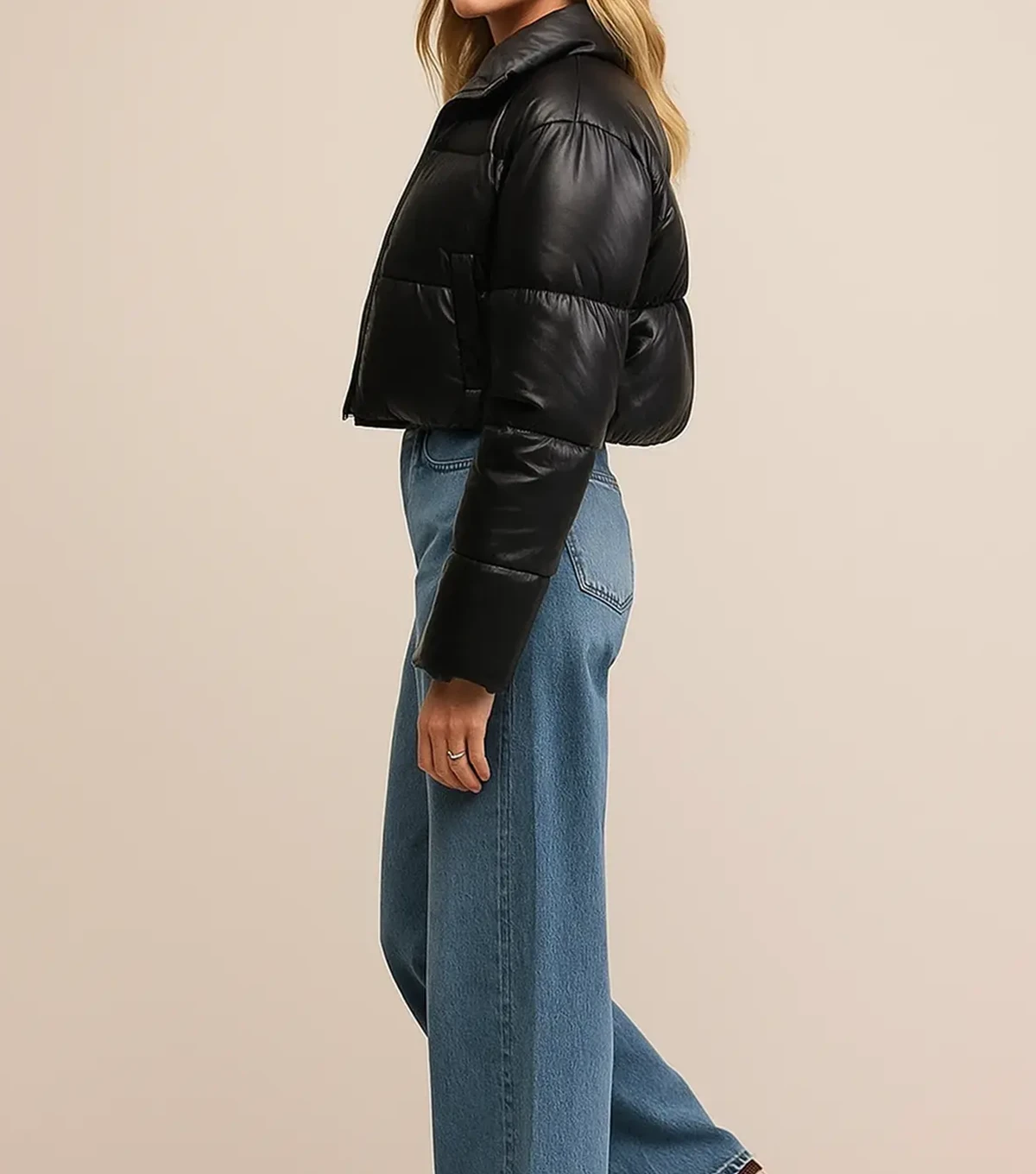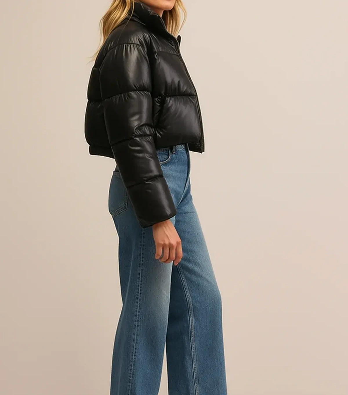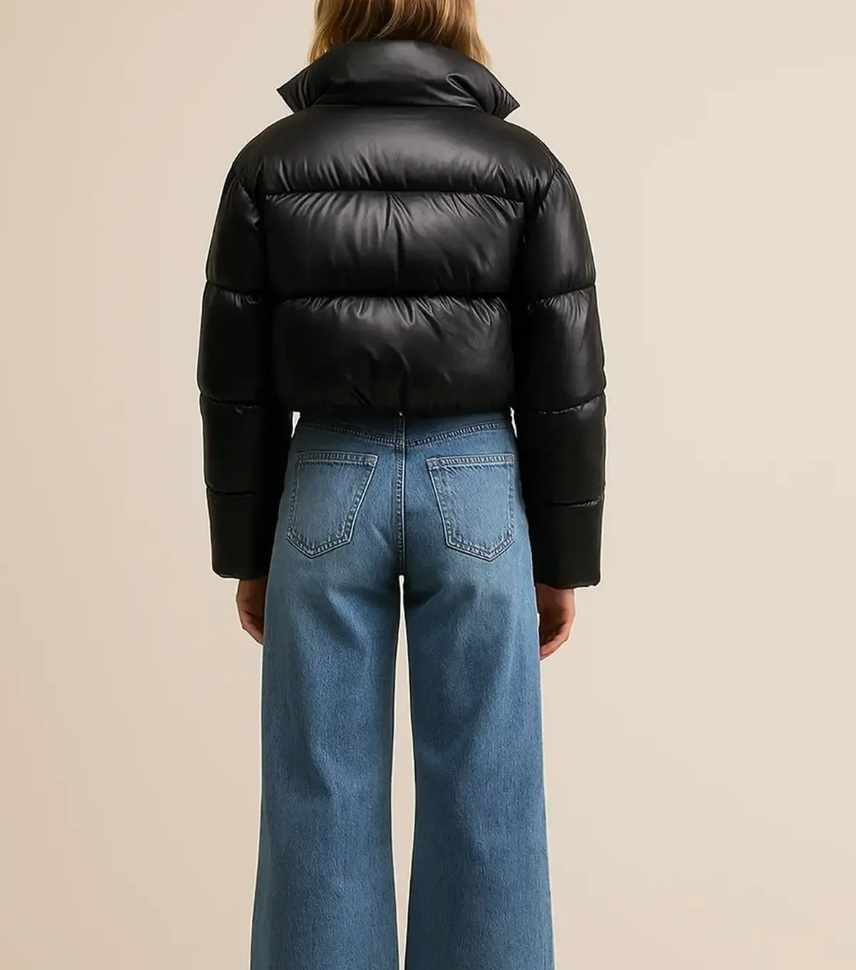 Shop the Harper Black Cropped Puffer Jacket for Women