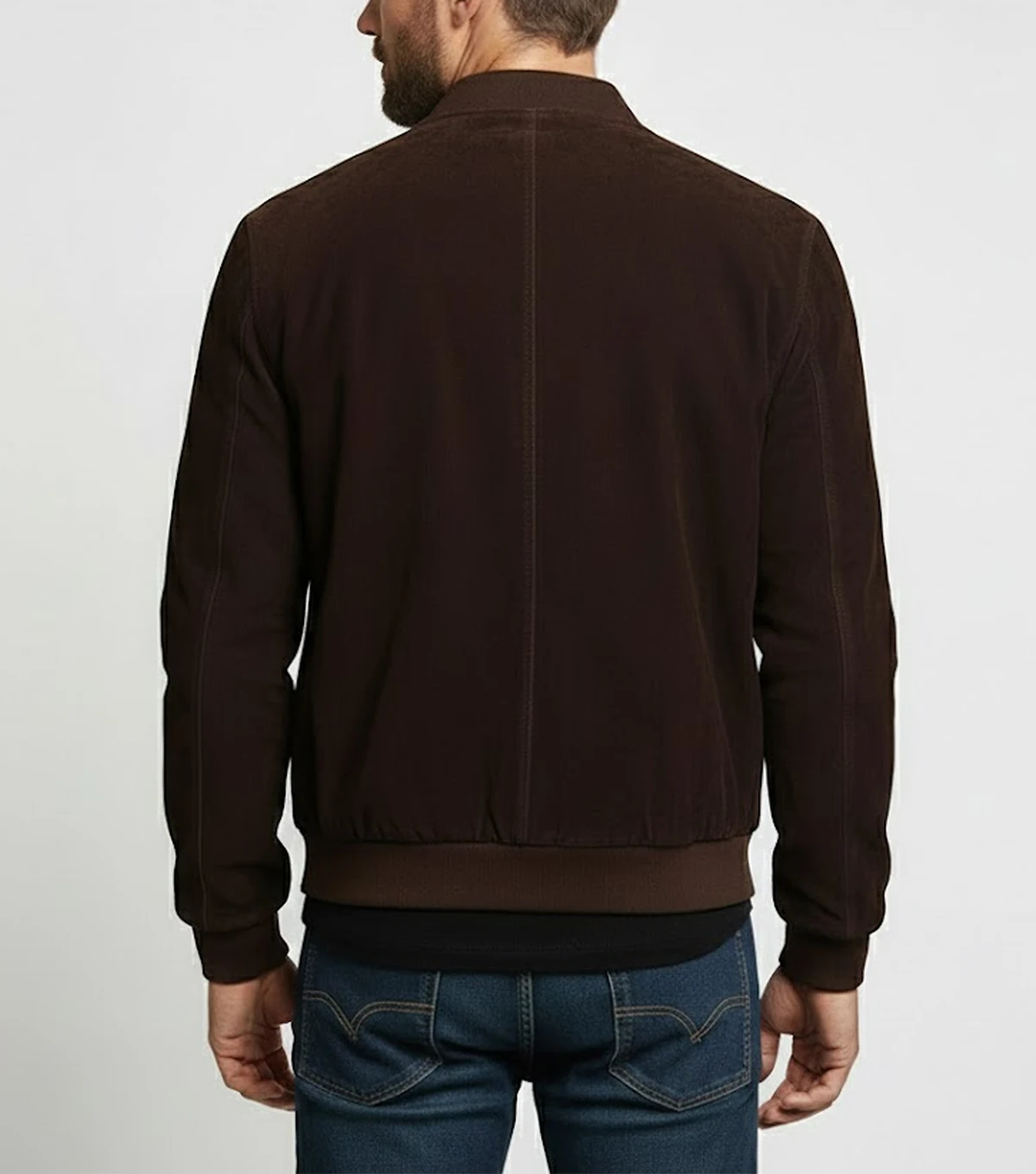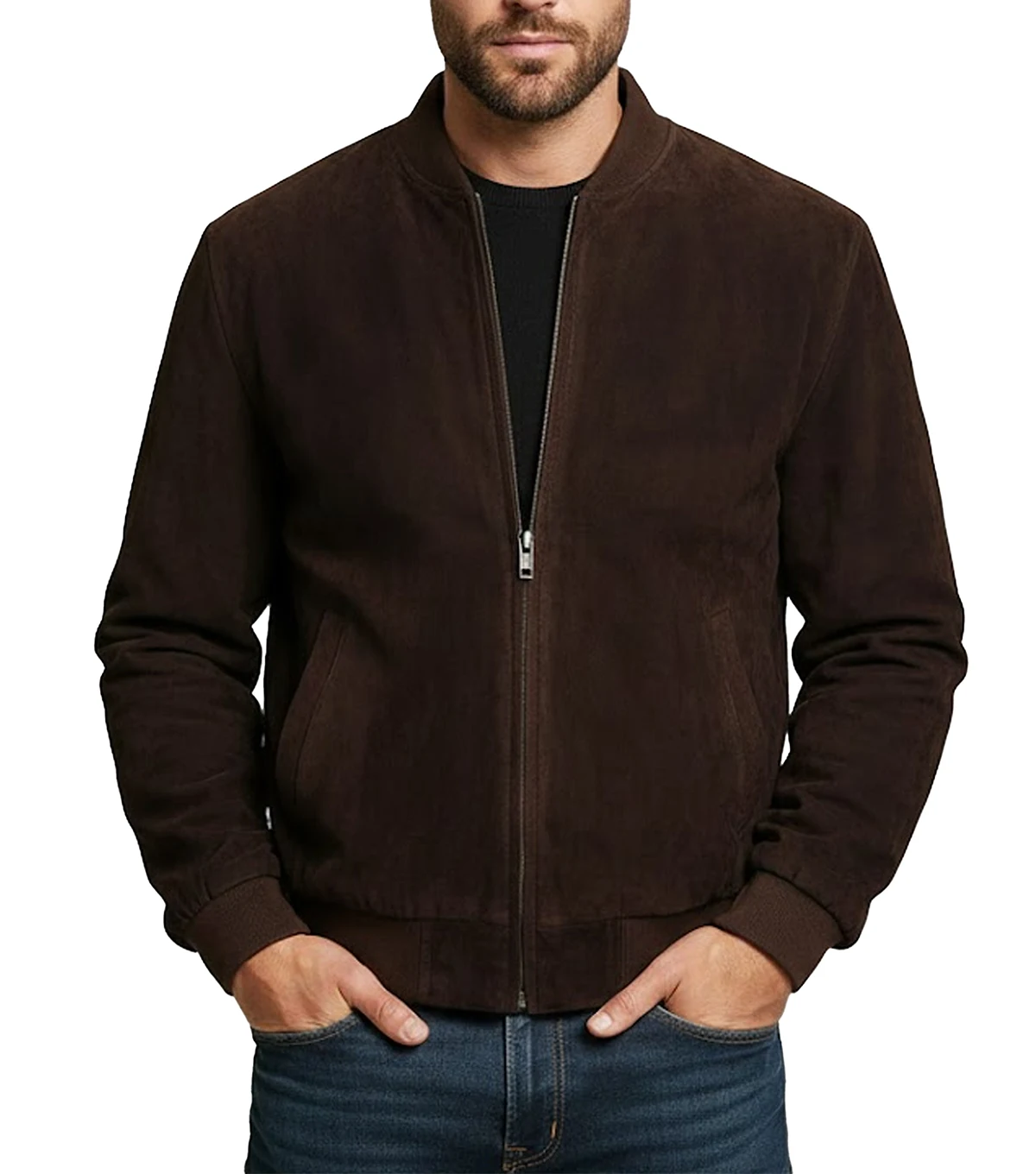 Its deep, dark brown hue brings a versatile sophistication. Such a universal color palette effortlessly complements a large number of outfits from casual streetwear to smart-casual ensembles. Just pair it over a sleek button-down for a polished formal look, or throw it over a graphic tee and comfy trousers for smart street style. The choice is yours. With pieces like this dark brown leather jacket with a suede design, layering gets easy. Its rugged fabric, tailored stitching, and attention to detail make it a statement piece in any wardrobe. This jacket is a perfect blend of signature style and modern craftsmanship. So get your hands on this mens suede bomber jacket and upgrade your style effortlessly.
