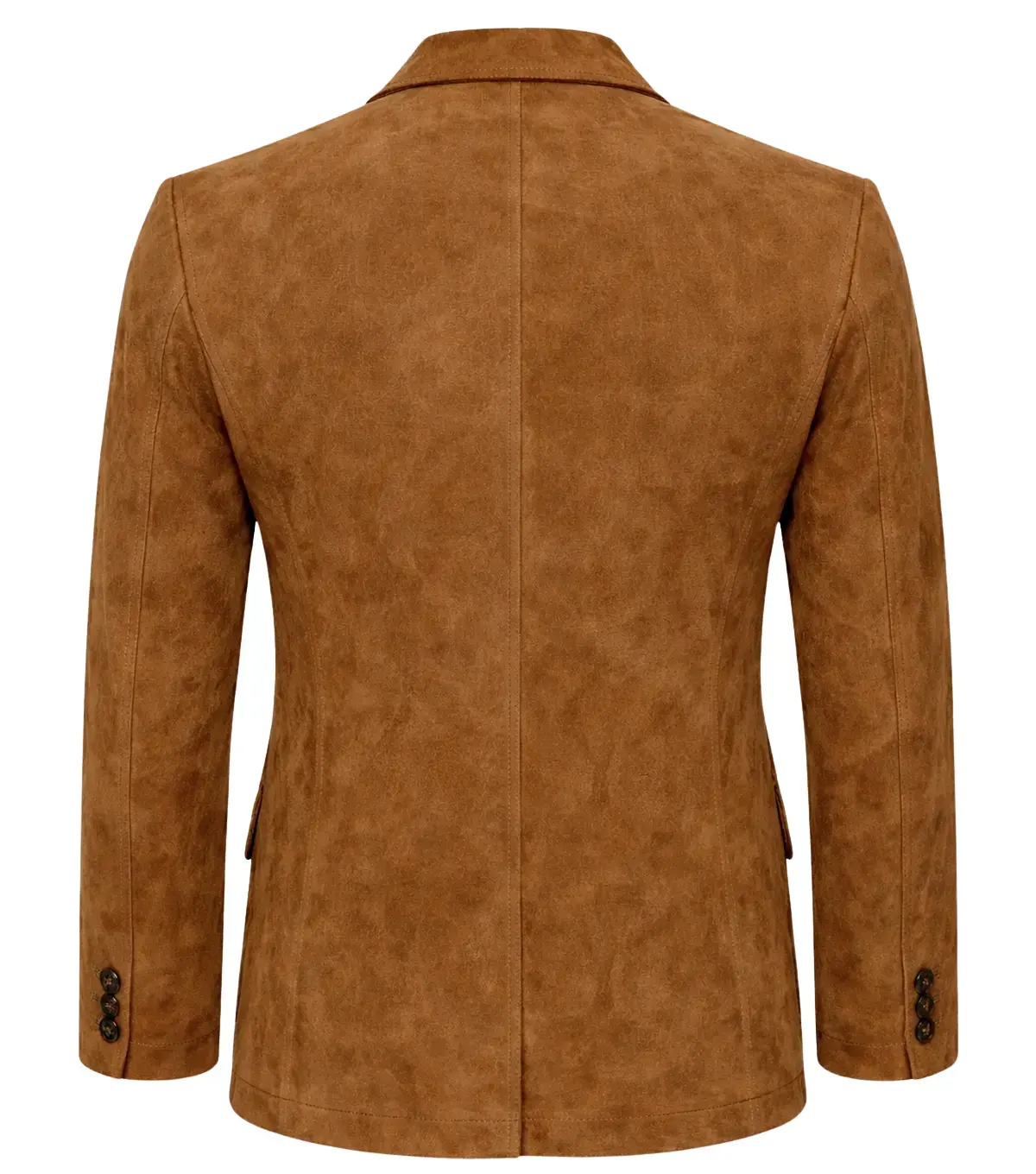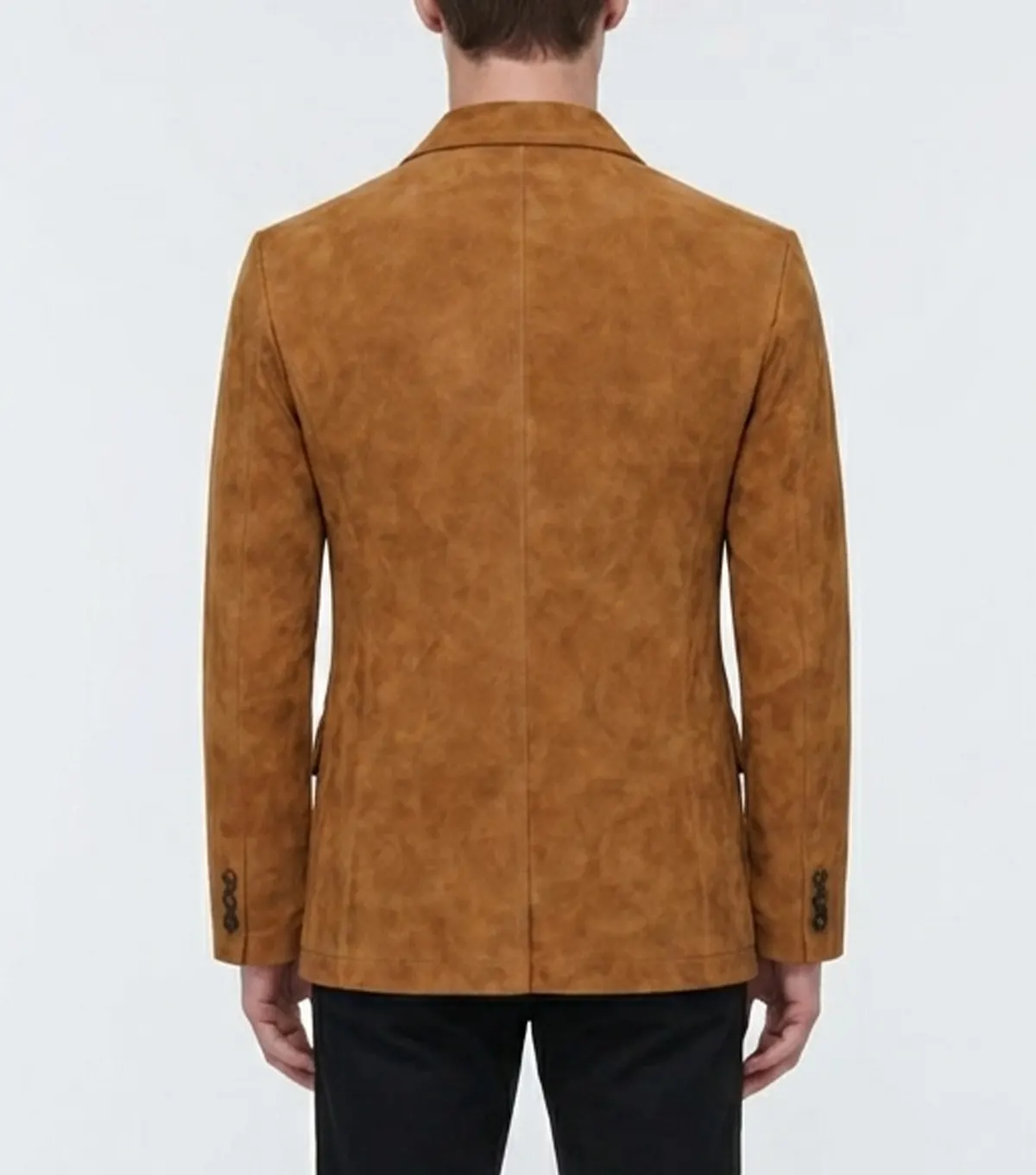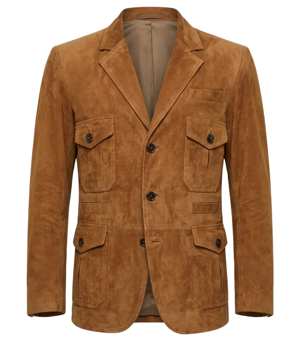 Mens Caramel Brown Multi Pocket Suede Blazer Sport Coat