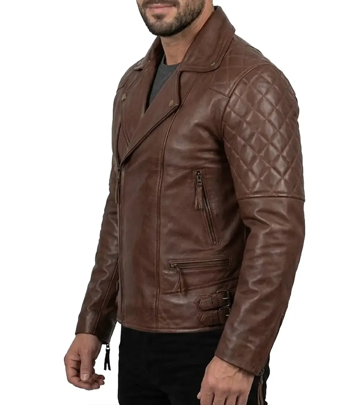 Some jackets just grab your attention without trying. The Mens Distressed Brown Quilted Biker Leather Jacket is exactly like that. It’s got that worn-in leather look that feels rugged, like it’s been through adventures even before you wore it. The quilted shoulders make it look different from normal jackets, giving it personality. You can wear it out for coffee, night rides, hanging with friends, it doesn’t matter, it just works. It’s casual but still looks cool, the kind of jacket people notice without you saying a word.