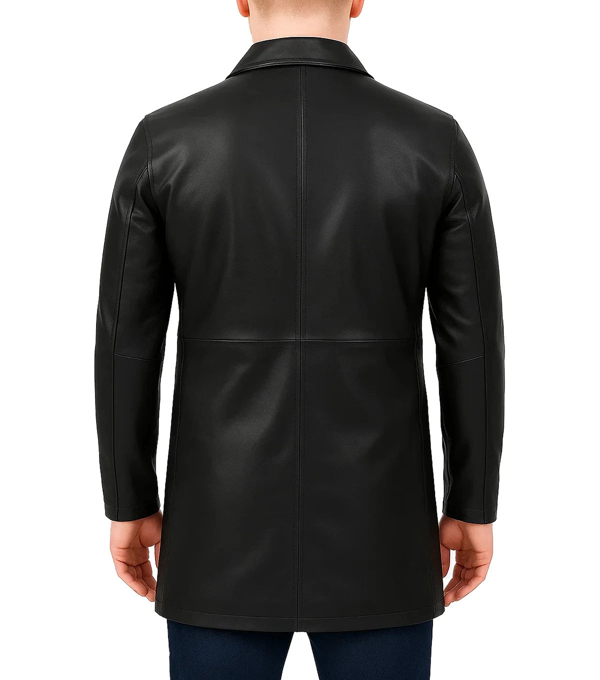 Ralvyn Black Classic Collar Button Front Leather Coat