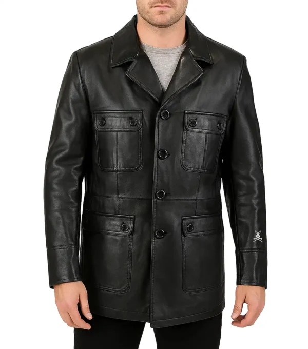 Be the first to review “Varston Black Four Pocket Buttoned Leather Coat”
