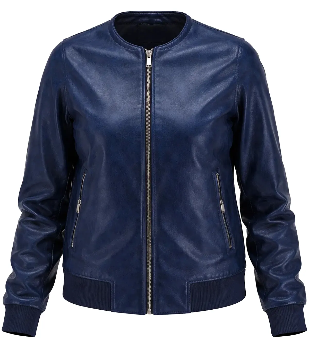 Buy Leather Lambskin Blue Bomber Jacket for Women’s