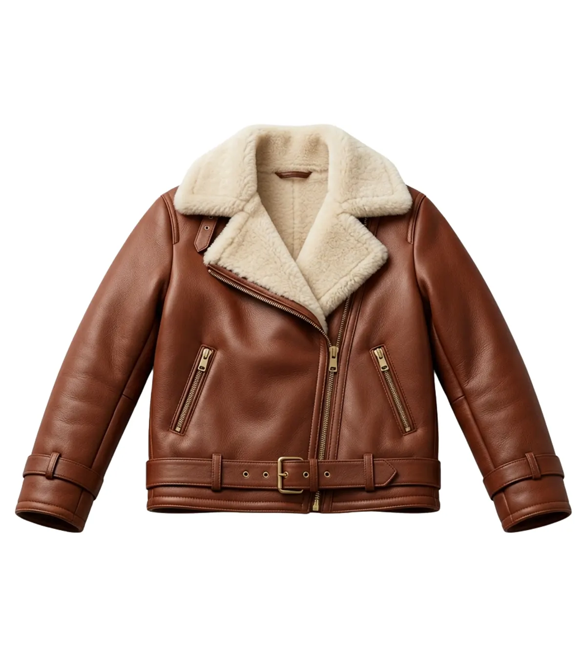 The Womens Chestnut Aviator Shearling Leather Jacket isn’t just a jacket—it’s one of those pieces you reach for again and again. Cozy, stylish, a little rugged, and perfectly imperfect in the way real leather jackets feel. It’s casual but can also make a statement if you pair it with the right outfit. You wear it, feel good, and notice the details—the shearling, the zippers, the belt, the color. It’s just a jacket you’ll probably end up loving more than you expect. So, order this enticing piece from the Women’s Aviator Leather Jackets collection.