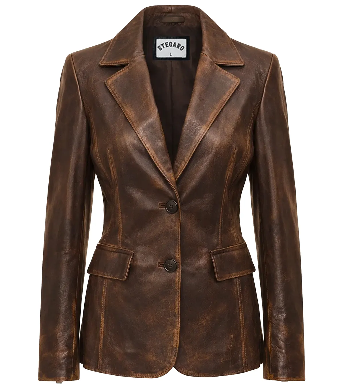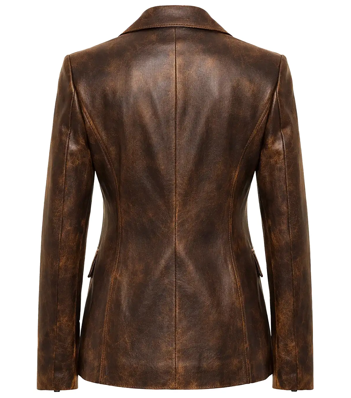 Buy Women’s Brown Distressed Genuine Leather Blazer Jacket